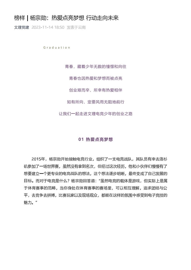 杨宗勋:热爱点亮梦想 行动走向未来