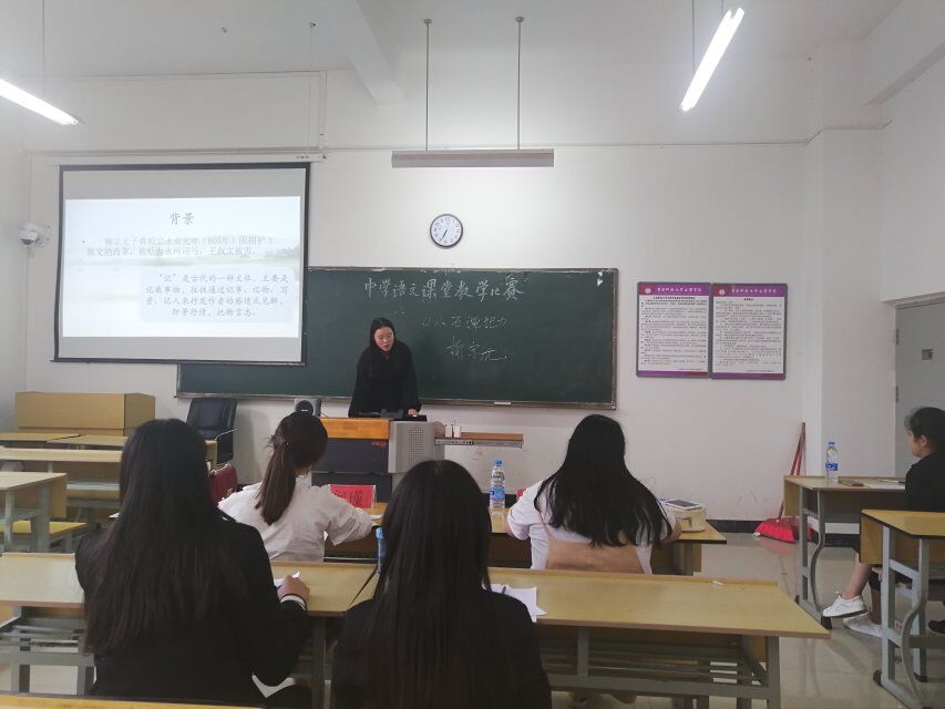 为了提高我校学生的教育教学能力,丰富学生的课外生活,激励学生朝着更好的目标前进,人文学院组织了2019年第八届汉语言文化节之中小学课堂教学比赛。此次比赛采用抽签法,对学生进行课堂教学能力的考察。评委们也采用公平公正的评分原则,为参赛选手进行现场打分。讲课比赛分为两部分,中学语文课堂教学与小学课堂教学,小学课堂又涉及到语文、数学、英语的内容。赛制采用初赛、半决赛、决赛的形式,经过层层筛选,选出最优秀的“教学老师”。每位参赛选手有10分钟的教学时间,要求每一位选手在规定时间内为大家呈现出自己最精彩的课堂。