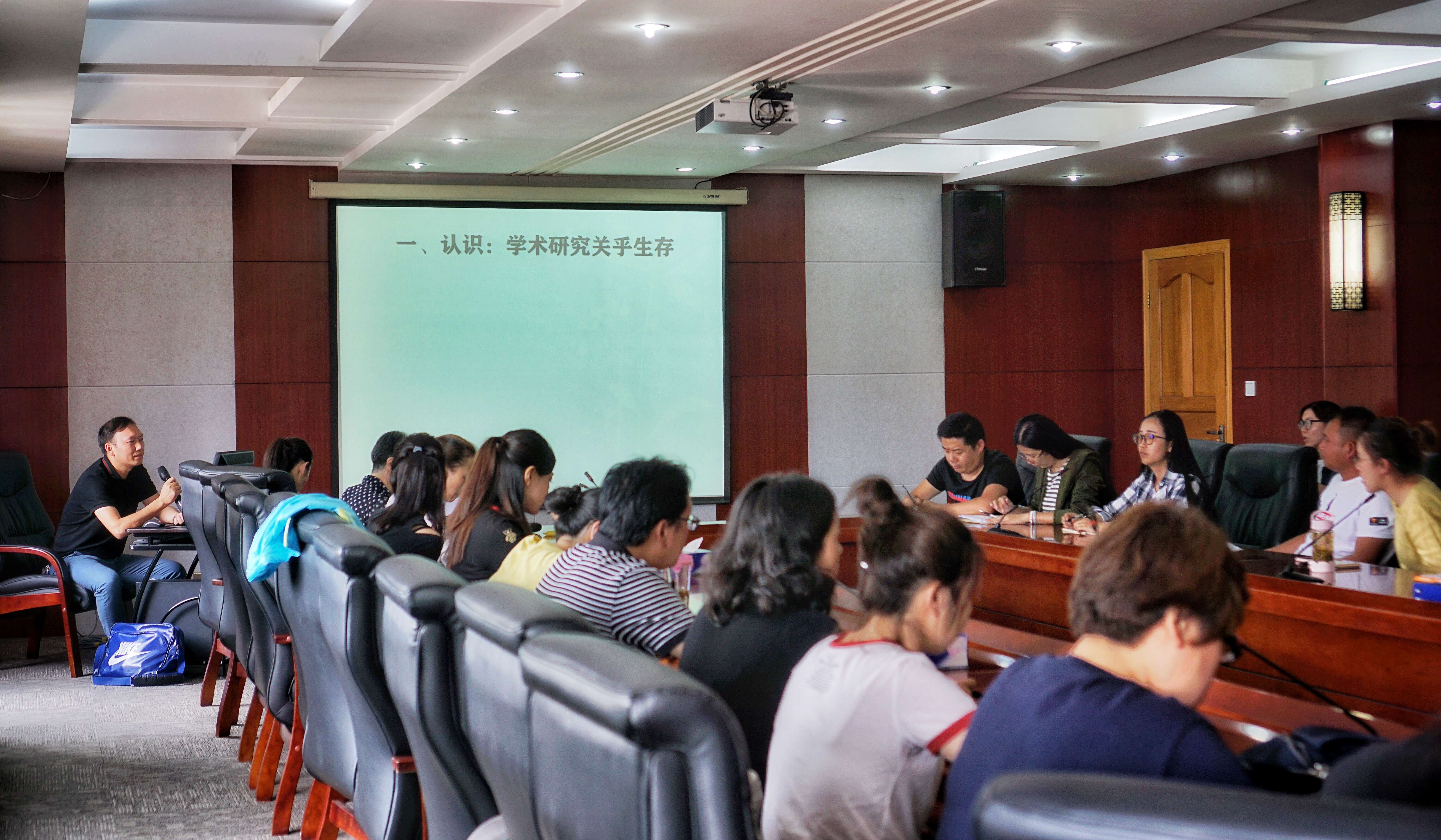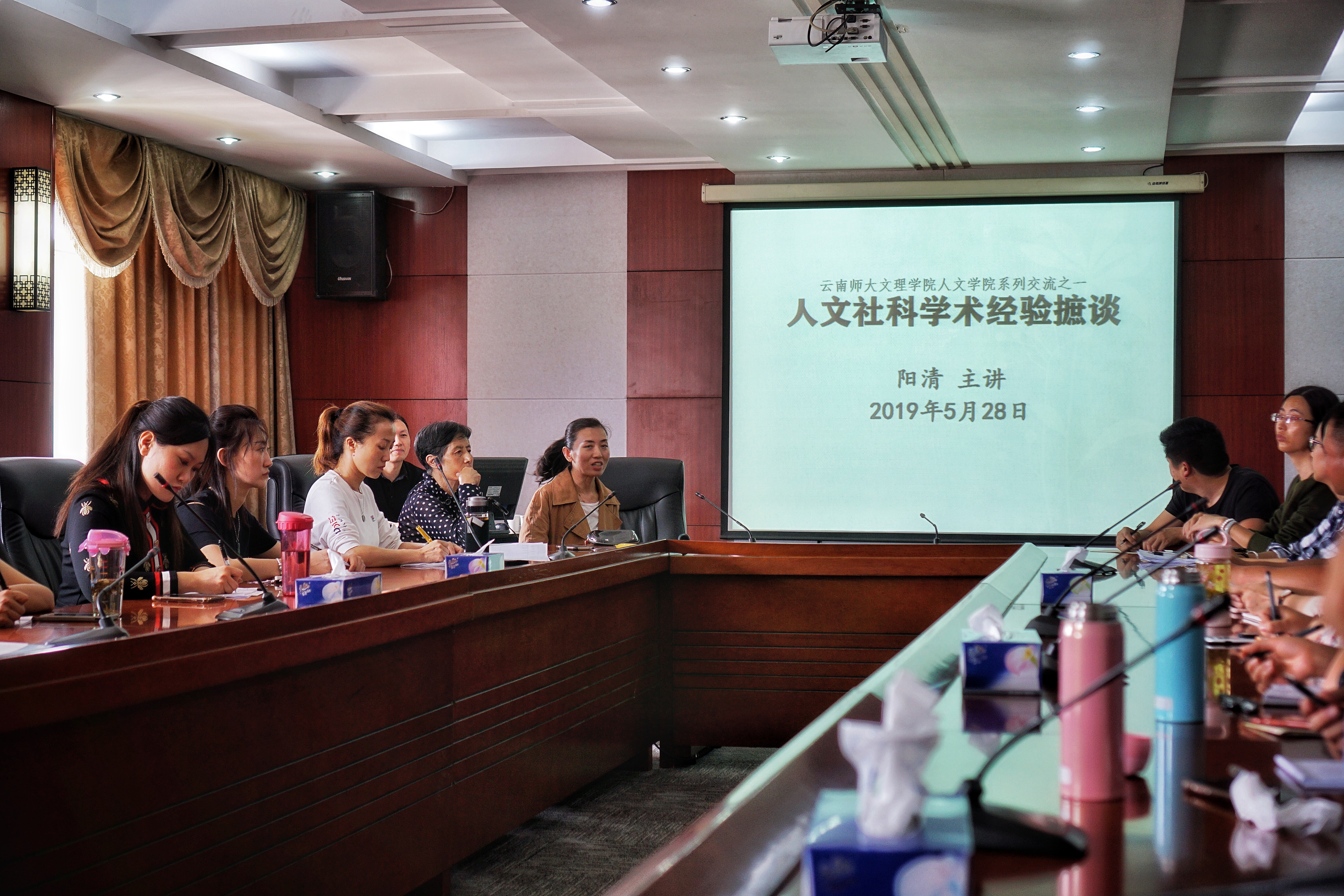 5月28日下午,人文学院系列交流之一,由云南师范大学阳清教授主讲的《人文社科学科经验摭谈》在办公楼504举行。