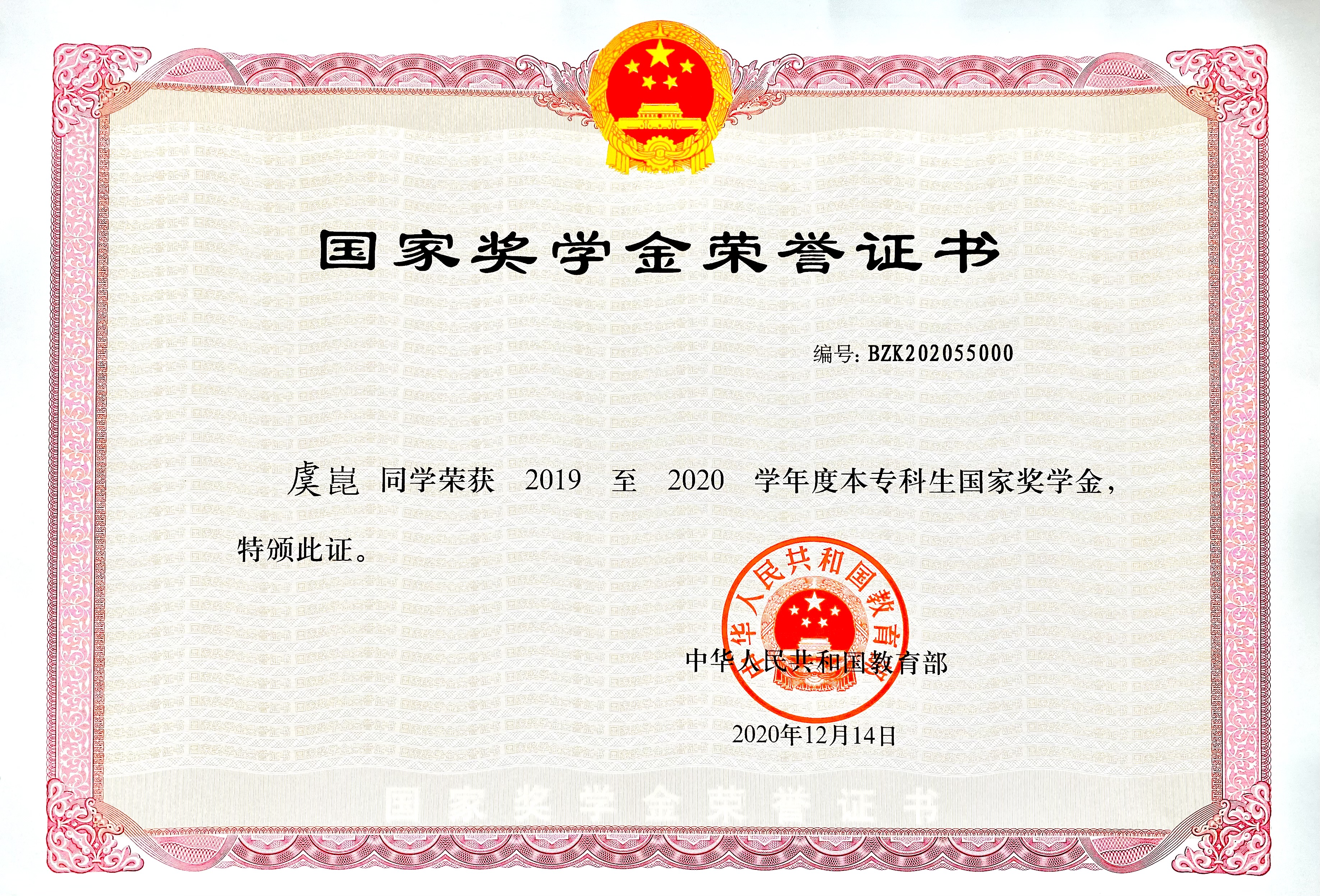 所获奖项:国奖:2018-2019学年国家励志奖学金。竞赛:1.2018年11月获第三届全国大学生预防艾滋病知识竞赛优秀奖。 2.2019年4月获第三届全国大学生环保知识竞赛优秀奖。 3.2019年5月获全国高校传统文化知识竞答三等奖。省奖:1.2019-2020学年”三好学生“称号。2.普通话水平测试二级甲等证书。校奖:1.两个学年均获“三好学生”称号。2.2020年获“优秀共青团员”称号。