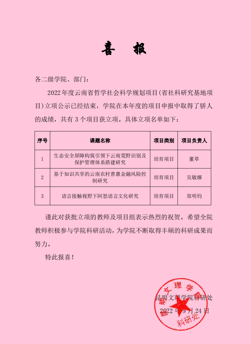 郑明钧老师主持项目获2022年云南省哲学社会科学项目立项