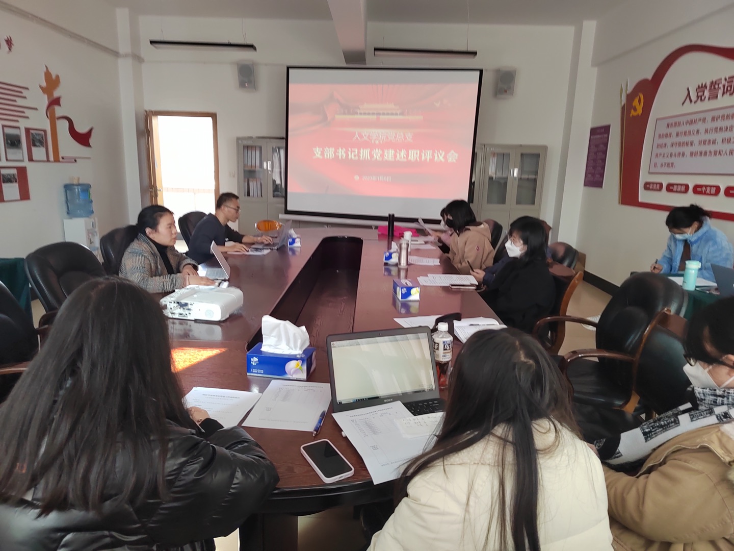 根据《中共昆明文理学院委员会关于2022年度党组织书记抓基层党建述职评议考核工作的通知》,人文学院党总支于1月9日举行了2022年度党组织书记抓党建述职评议考核会。会议由学院党总支副书记马云江同志主持,学院党总支委员、所属9个支部支委出席会议,由党总支书记禹云闪同志对9名支部书记述职做点评。