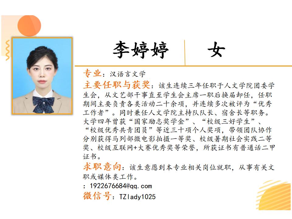 2019级汉语言文学A2班优秀毕业生推介