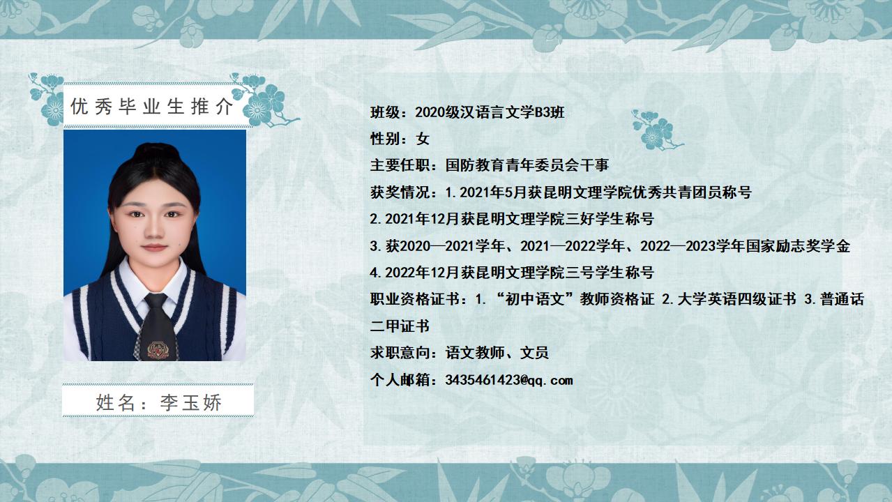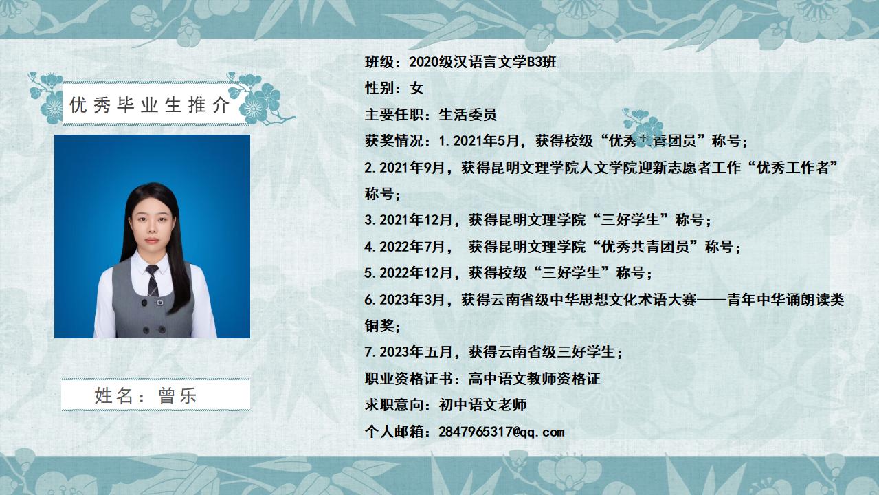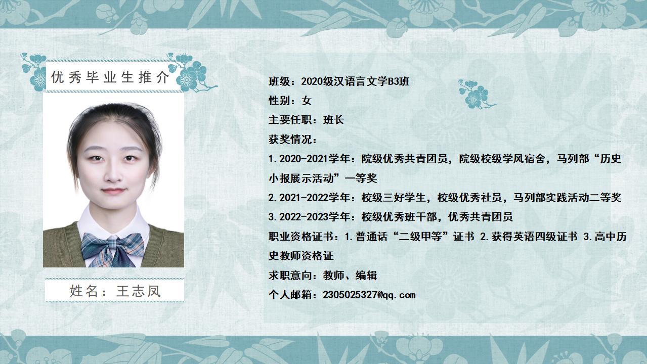 2020级汉语言文学B3班优秀毕业生推介