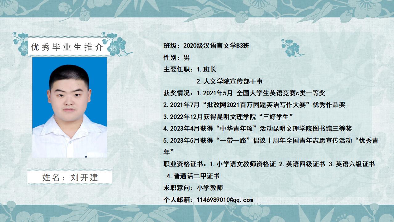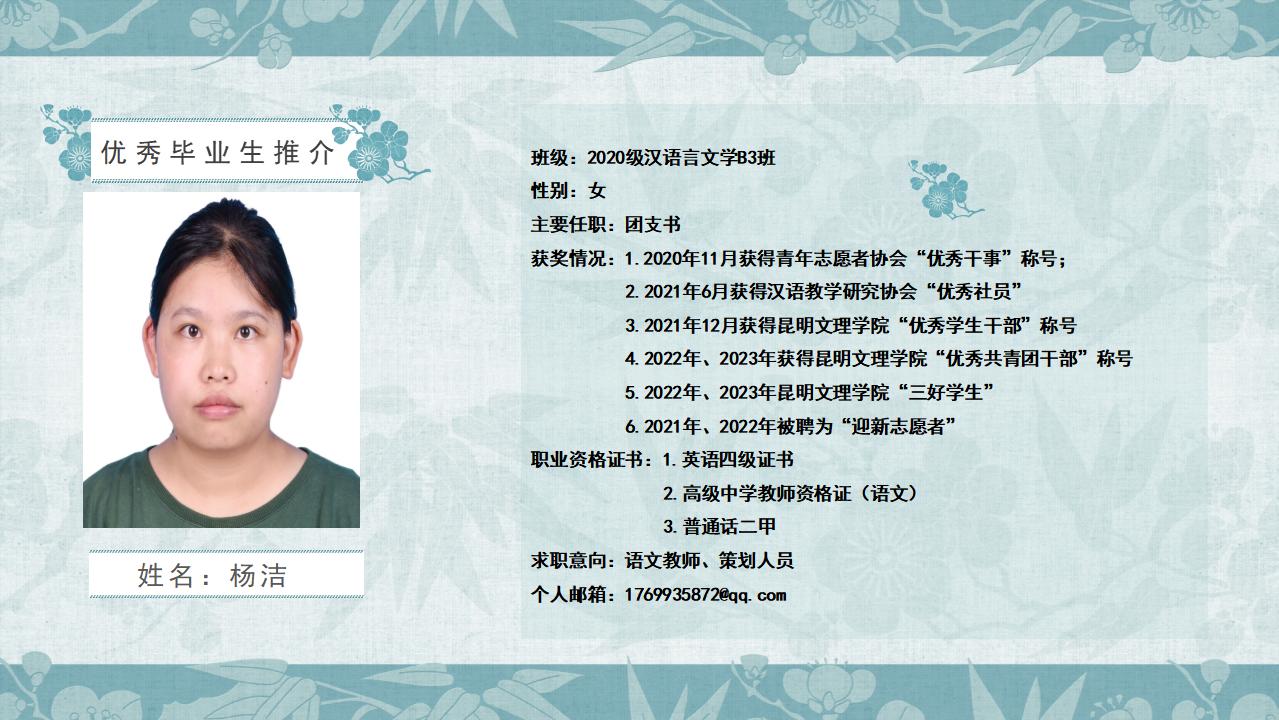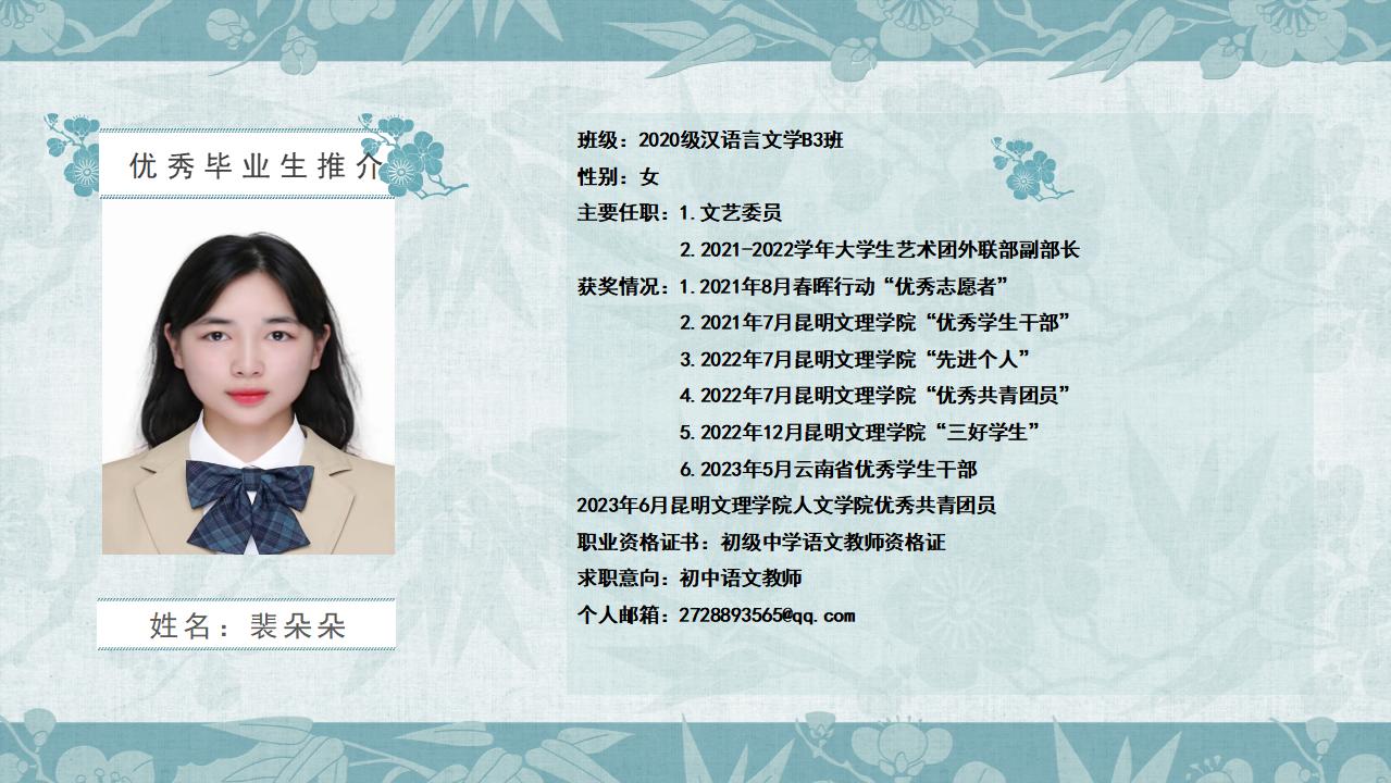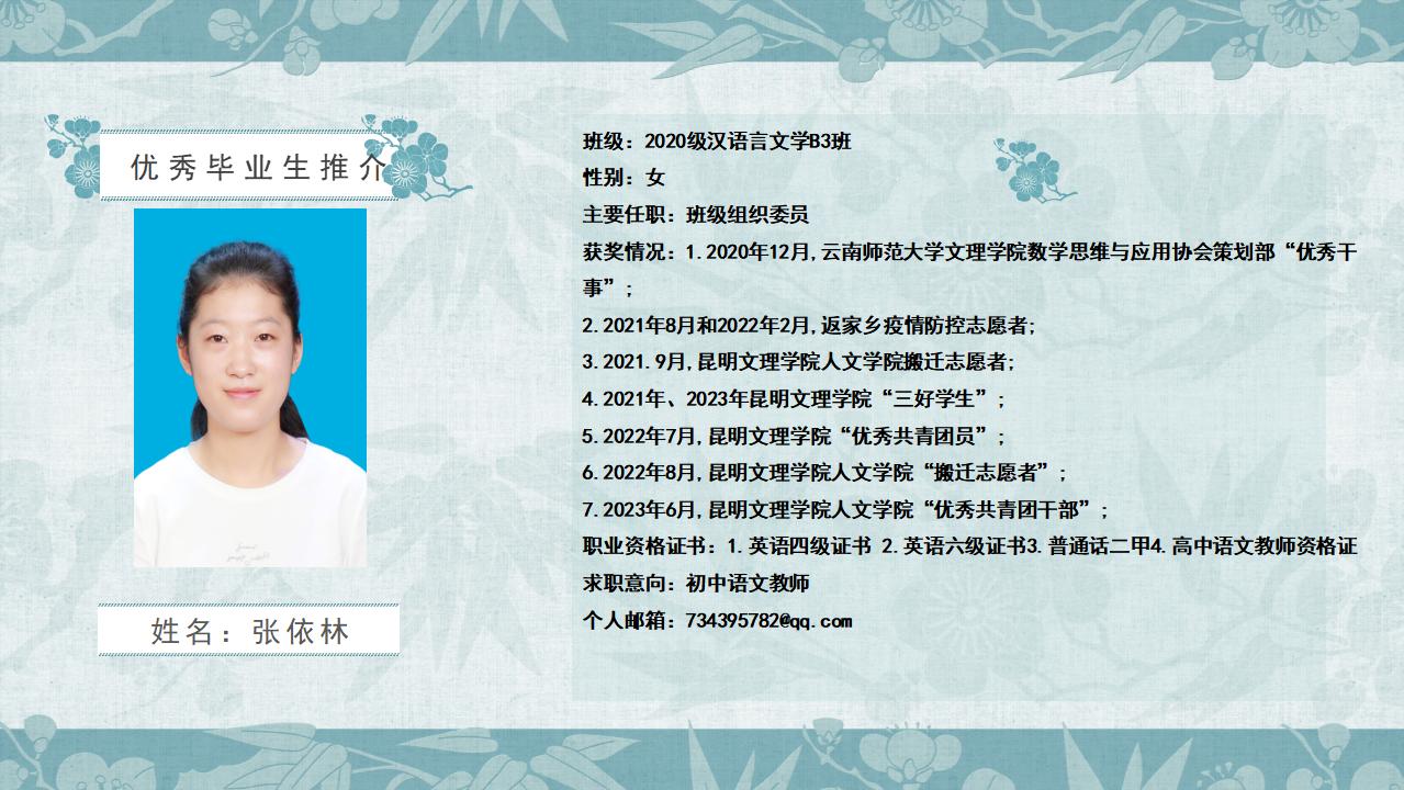 2020级汉语言文学B3班优秀毕业生推介