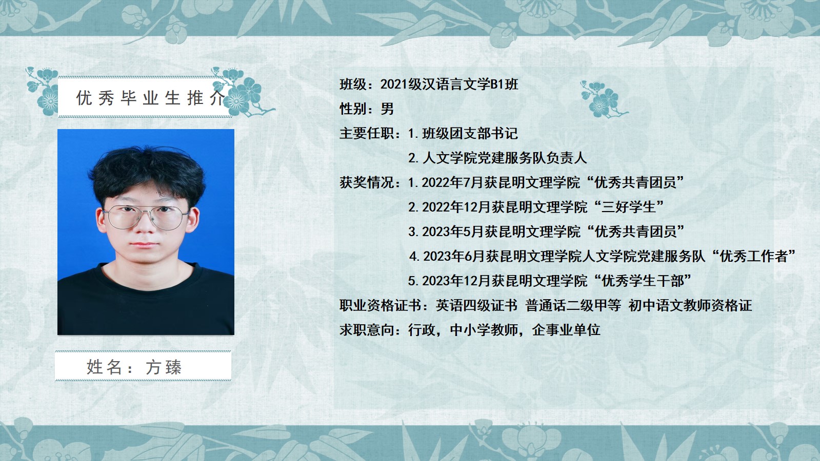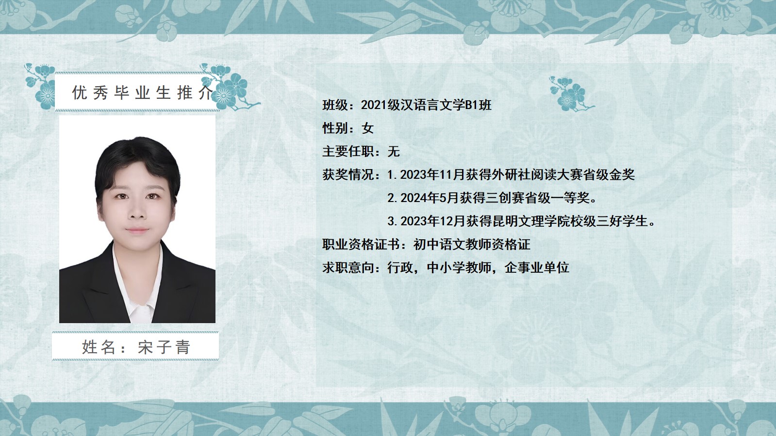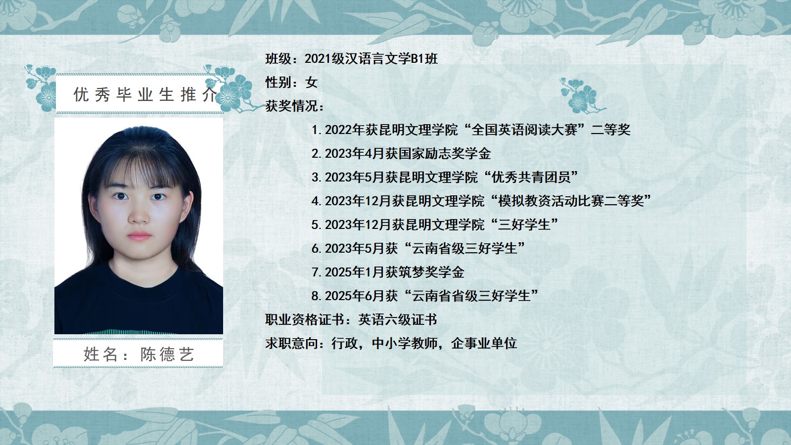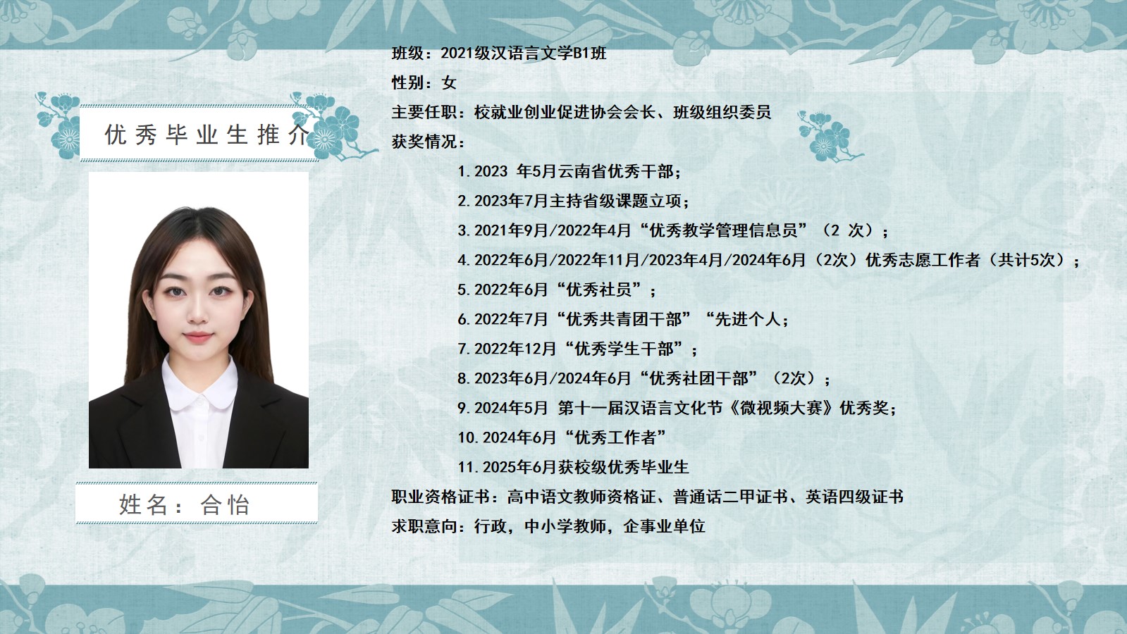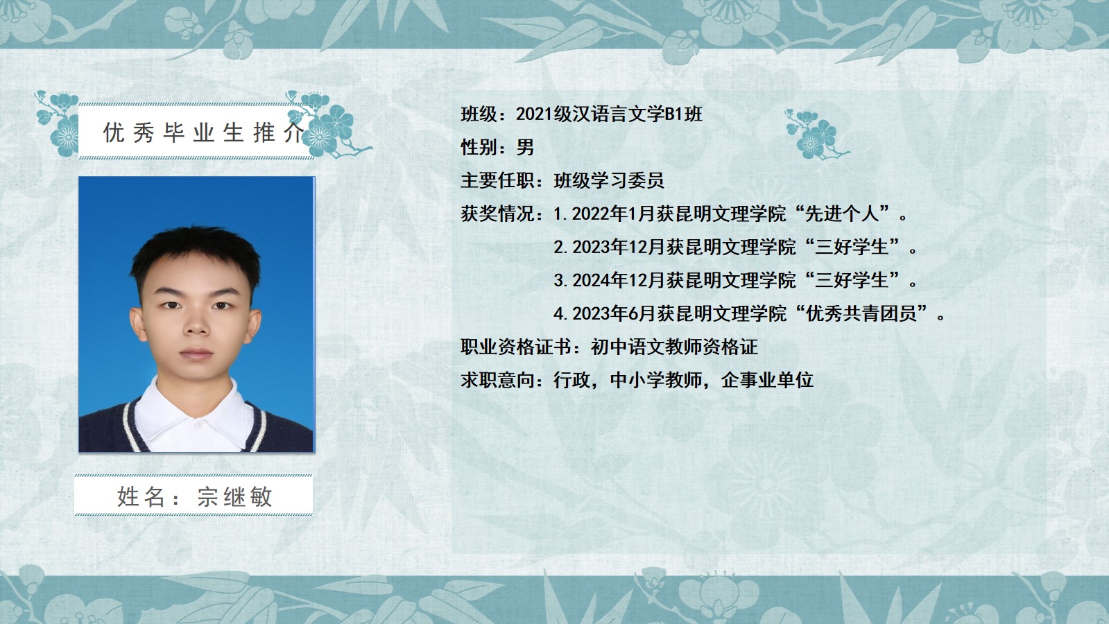 2020级汉语言文学B1班优秀毕业生推介