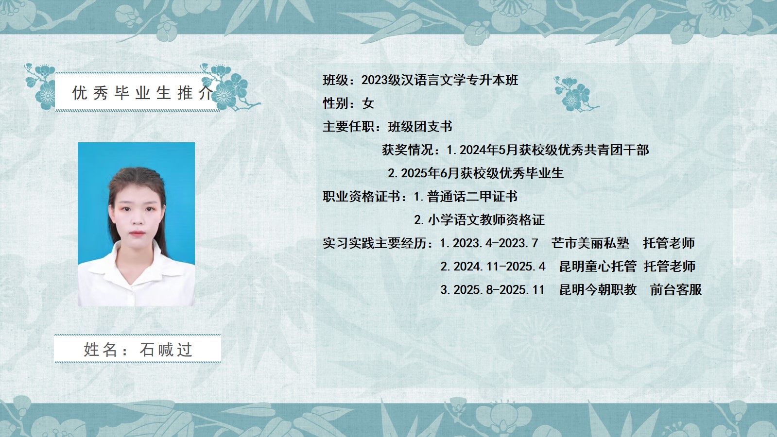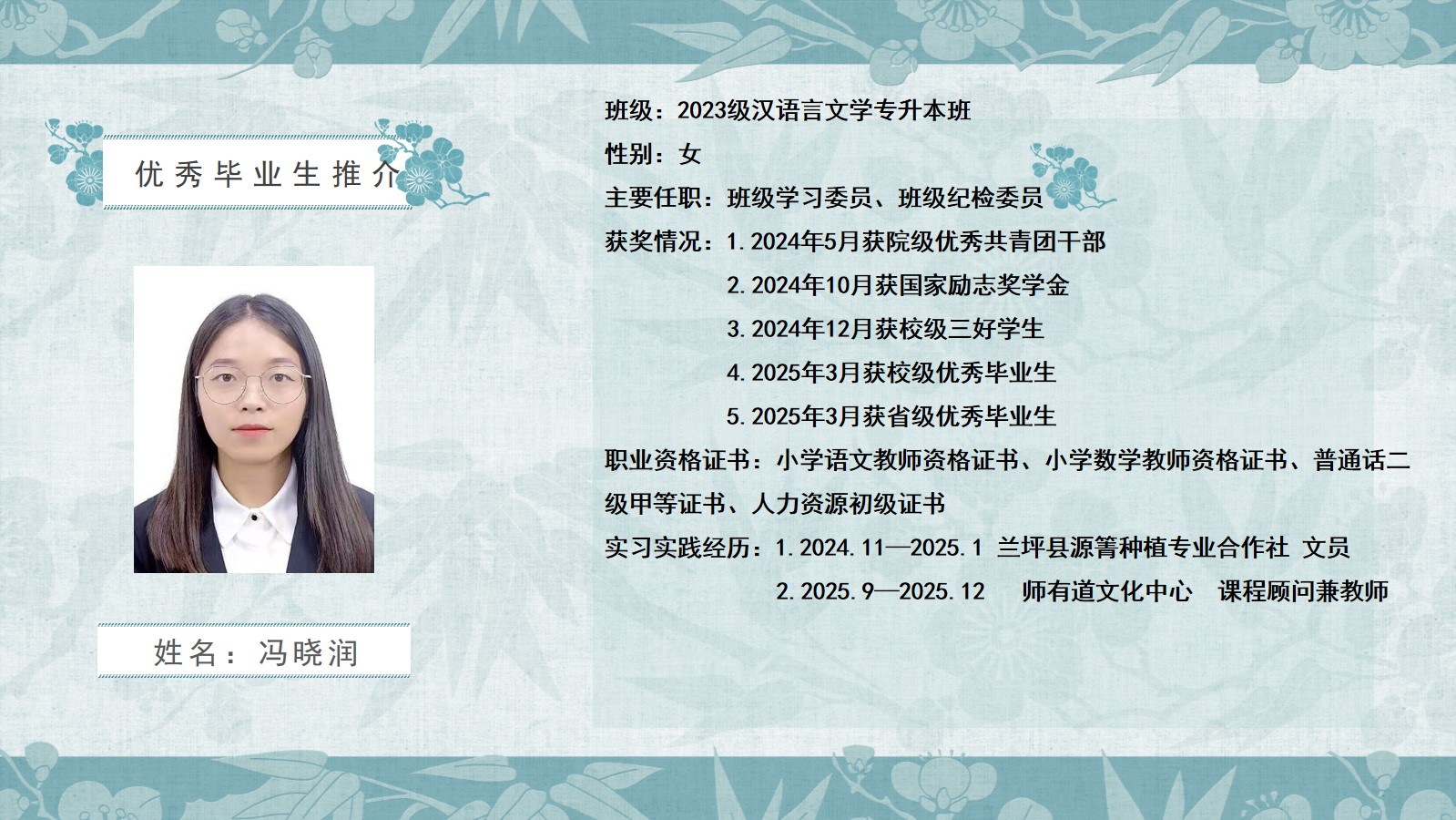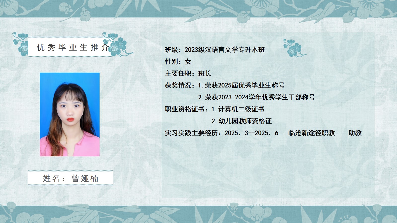 上一篇:2021级汉语言文学A4班优秀毕业生推介